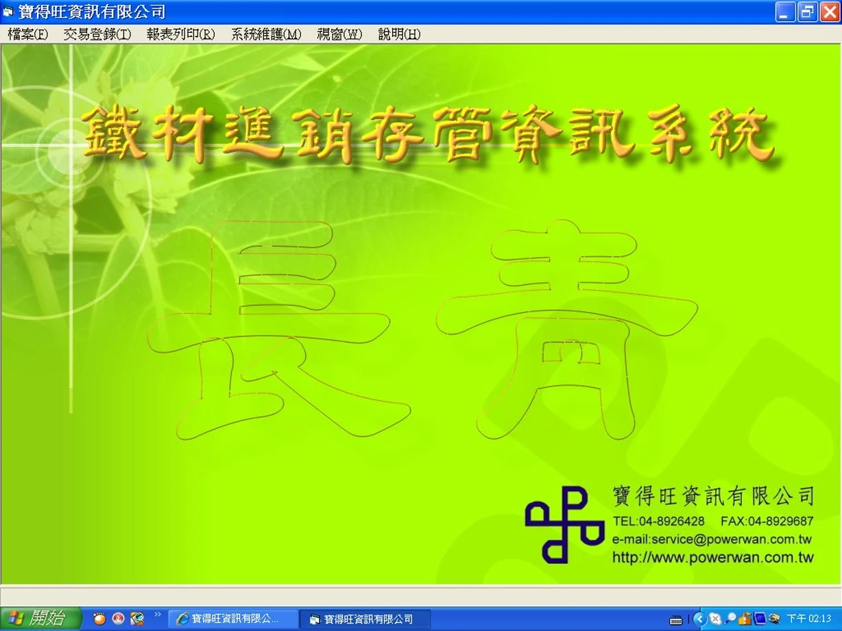 商品說明: 下載來試用 http://shop.powerwan.com.tw/長青鐵材進銷管理.exe 行業專業軟體